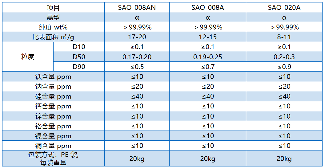 99.99%高纯氧化铝产品列表: